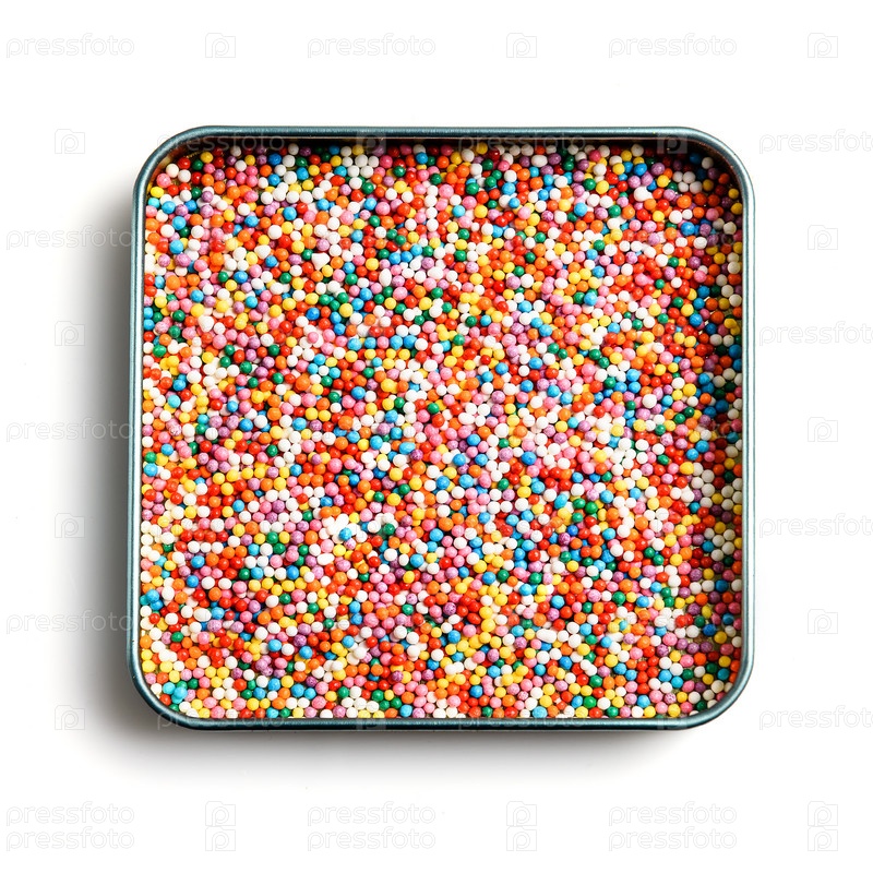 Посыпать кондитерские изделия красочными на белом фоне - вид сверху