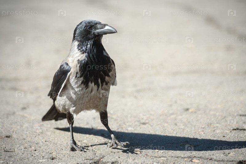 Птицы и концепция дикой природы - городская ворона на асфальте