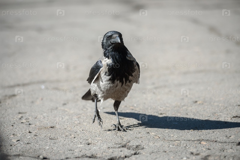 Птицы и концепция дикой природы - городская ворона на асфальте