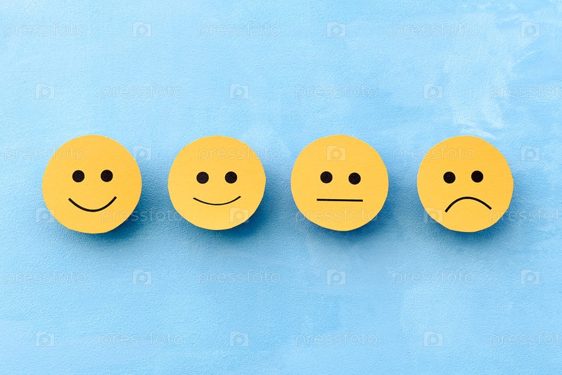 Шкала рейтинговой обратной связи. Расположение вида сверху с разными эмоциями