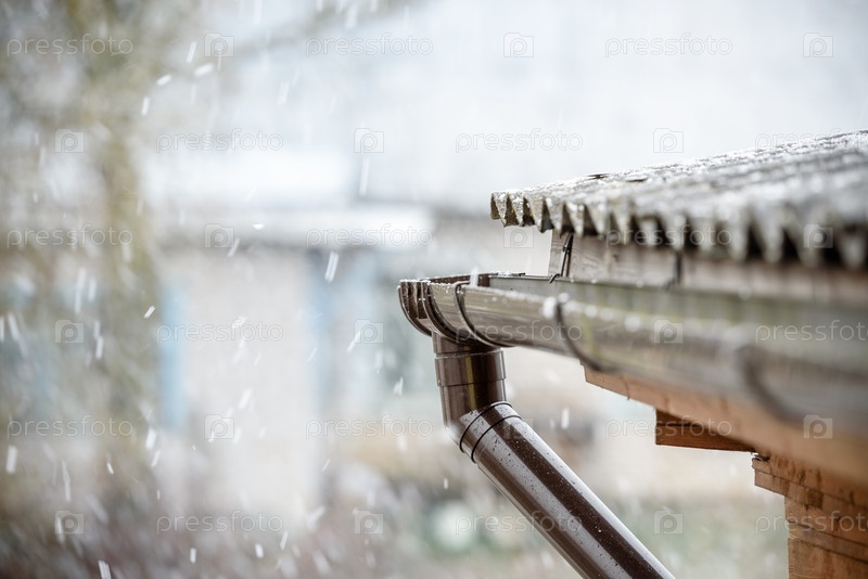 Снег падает на крышу дома - концепция плохой погоды весной