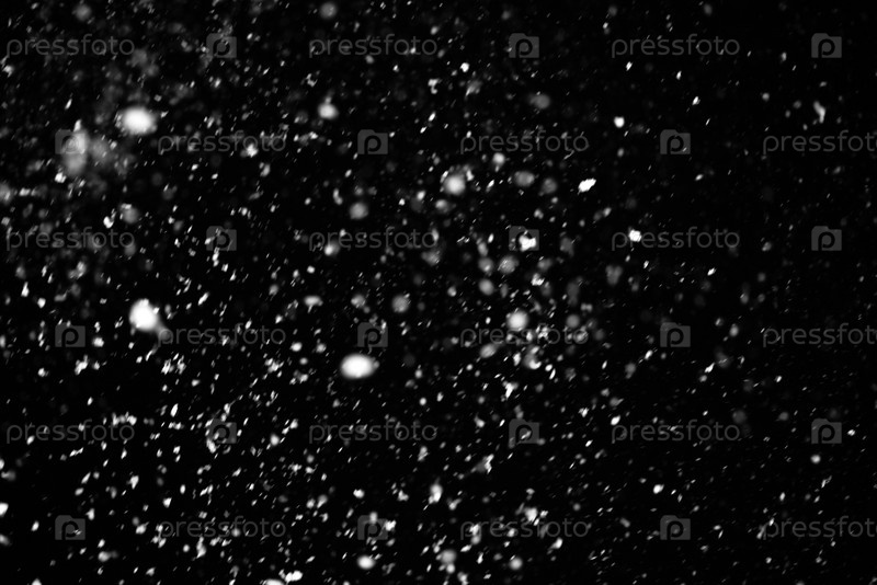Падающий снег на черном фоне. Снегопадная погода. Текстура для наложения
