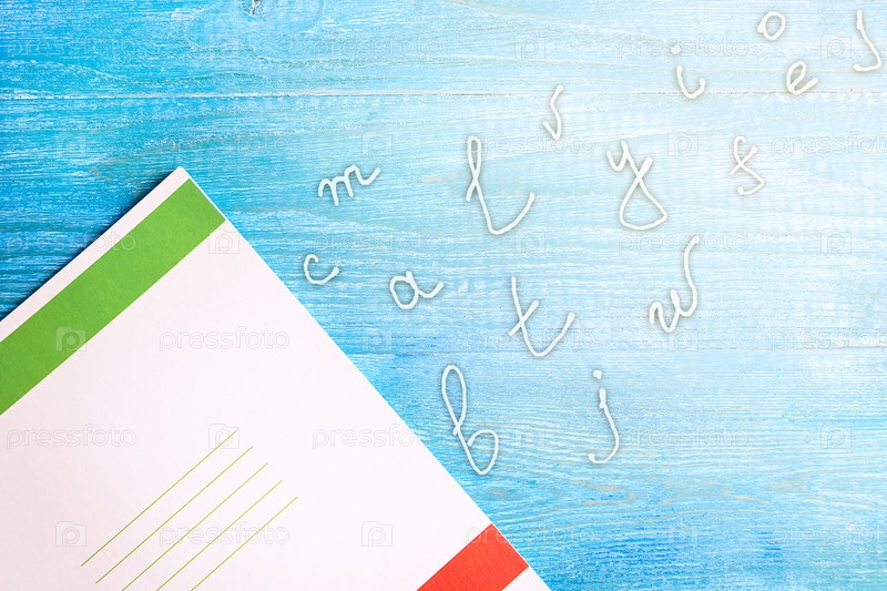 Ноутбук, буквы и деревянный фон