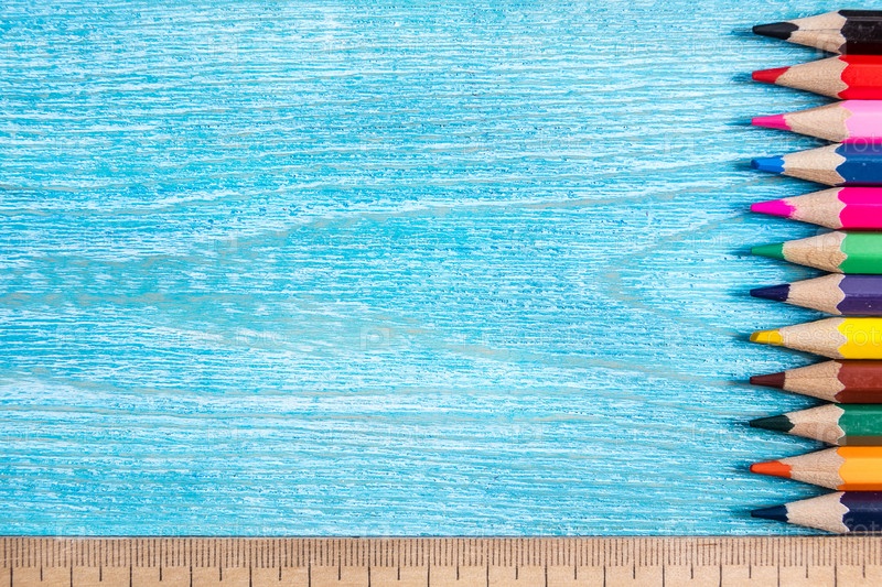 Снова в школу - карандаши, линейки и деревянный фон