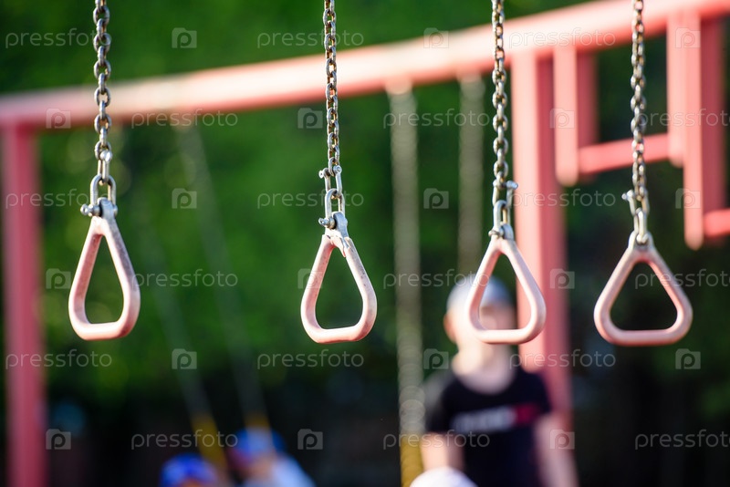 Спортивная площадка в городе - кольца для подтягивания крупным планом