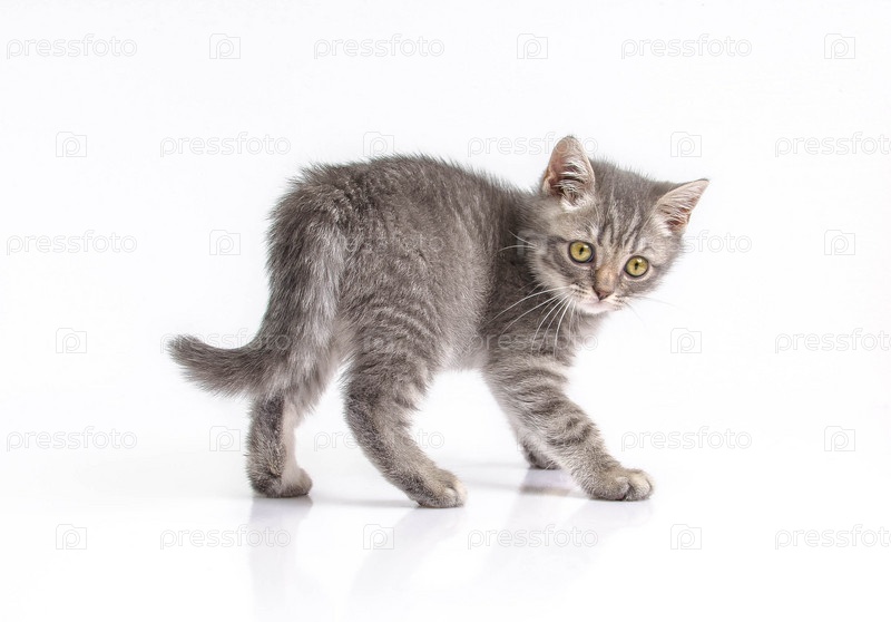 Британский котёнок играл смешно - изолированный белый
