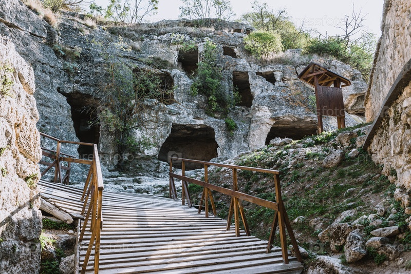 Крым, Бахчисарай, 13 сентября 2019 года: Пещерный город-крепость в горах Крыма - исторические древние руины