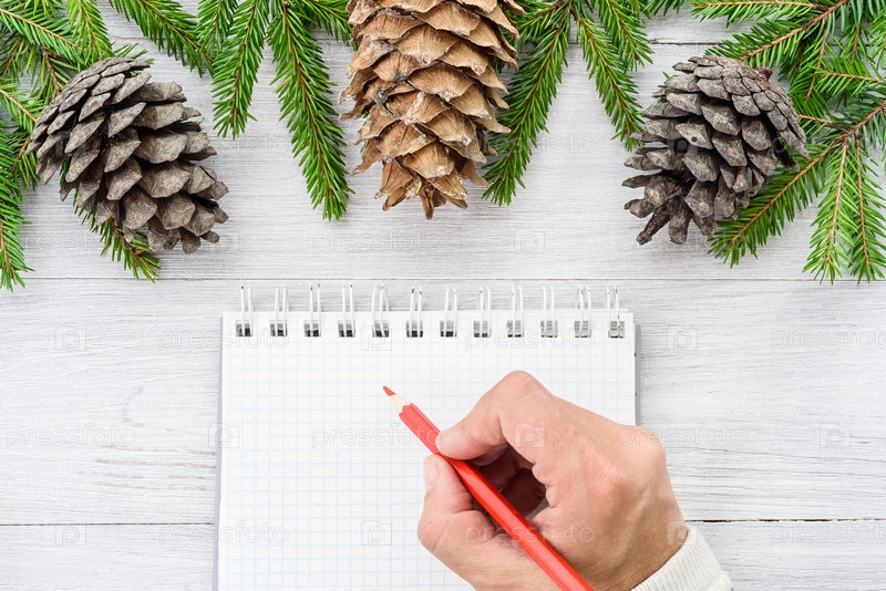 Новогодний фон. Рождественская композиция. Запись в блокнот на предстоящий год
