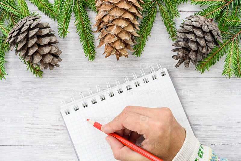 Новогодний фон. Рождественская композиция. Запись в блокнот на предстоящий год