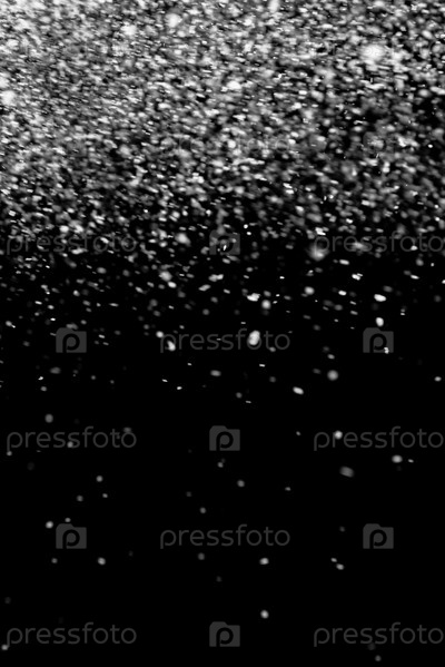 Падает снег на черном фоне. Текстура для наложения. Снежная погода, метель и гроза. Эффект боке. Светящиеся снежинки