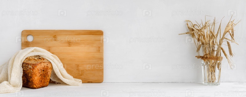 Баннер с белым фоном стены и копировальным пространством. Декор для домашней кухни