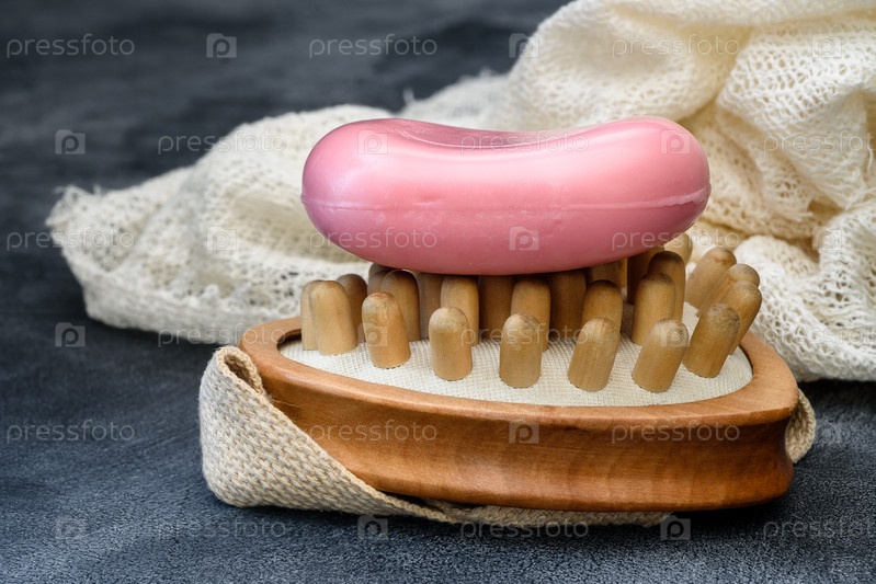 Туалетное мыло, щетка и махровая ткань - банные принадлежности