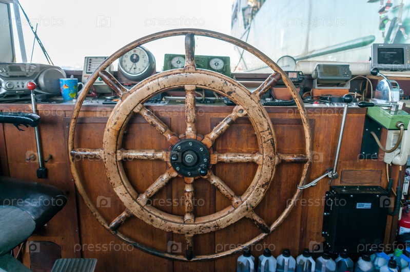 Россия, Санкт-Петербург, май 2021 г.: Капитанская каюта и руль