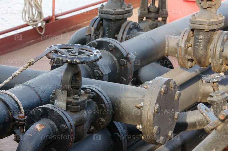 Россия, Санкт-Петербург, май 2021 г.: Краны и трубы на борту нефтяного танкера