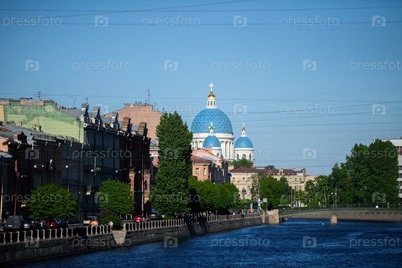 Россия, Санкт-Петербург, 30 мая 2020 г.: Вид на Троицкий собор с реки Фонтанки