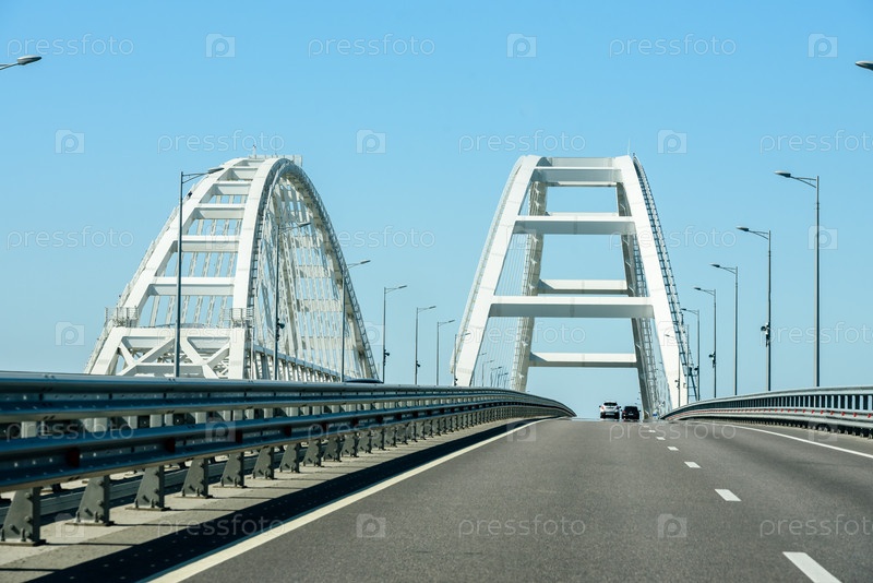 Россия, Крым, 11 сентября 2019 г.: Дорога в Крым через Крымский мост. Вид из окна автомобиля