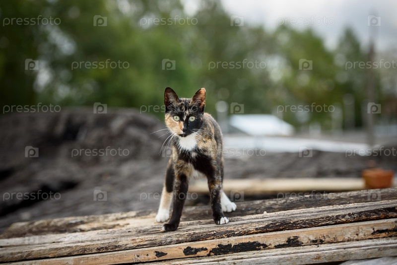 Бездомный кот сидит на крыше