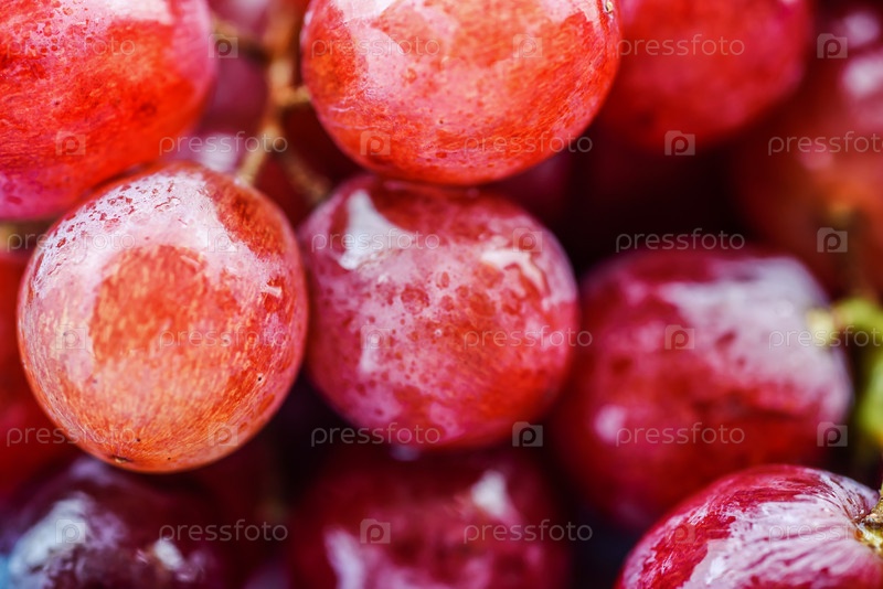 Макрос свежего красного винограда с каплями воды