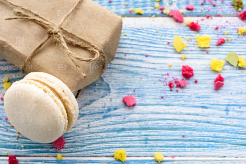 Сладкие макароны на белом фоне. Модные торты