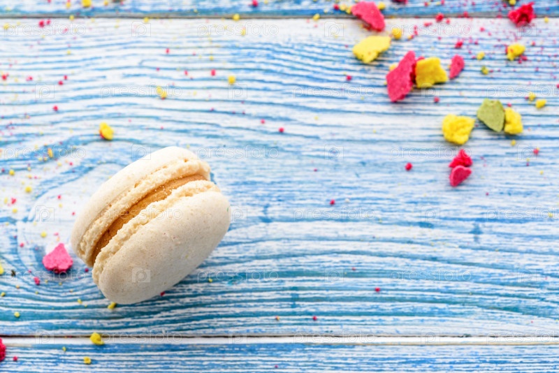 Сладкие макароны на белом фоне. Модные торты