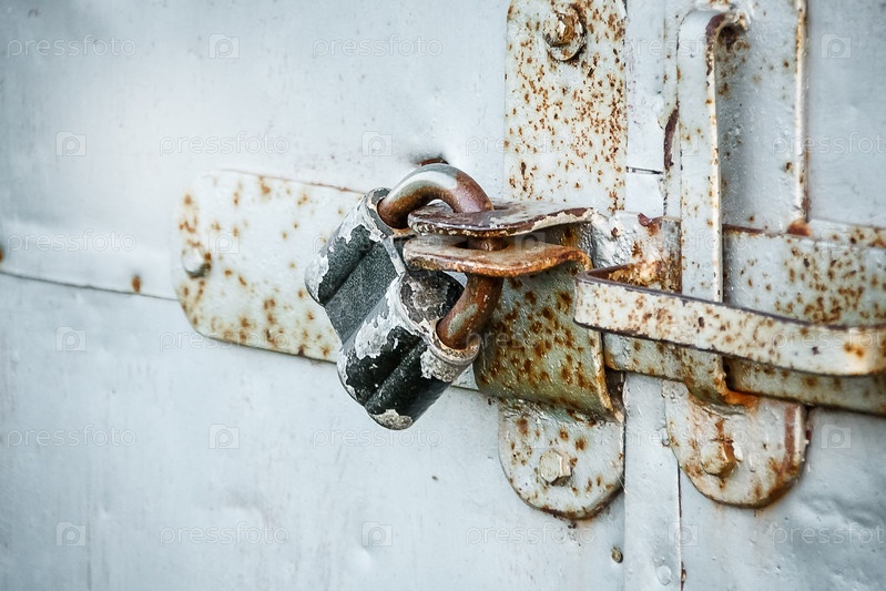 Замок на металлической двери, концепция защиты и безопасности