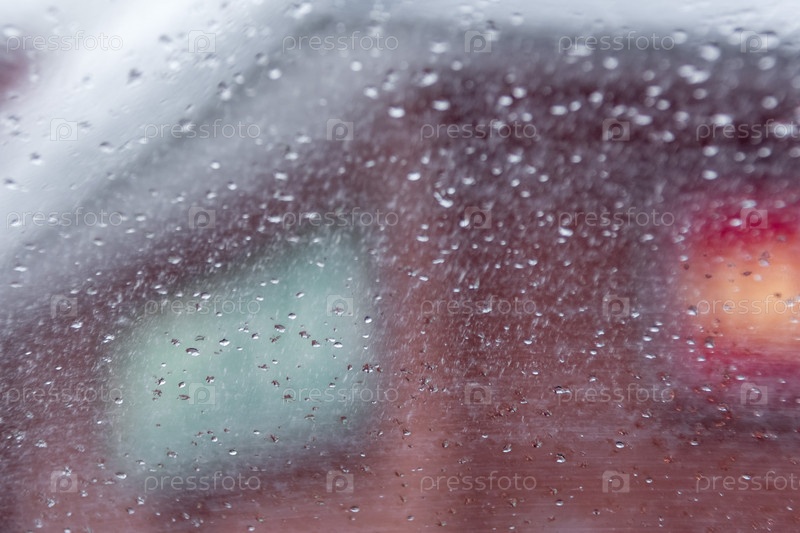 Вид на город через мокрое стекло, зимний пейзаж