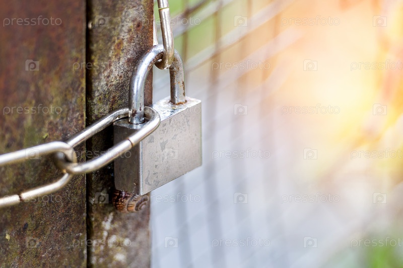 Замок на цепочке висит на воротах
