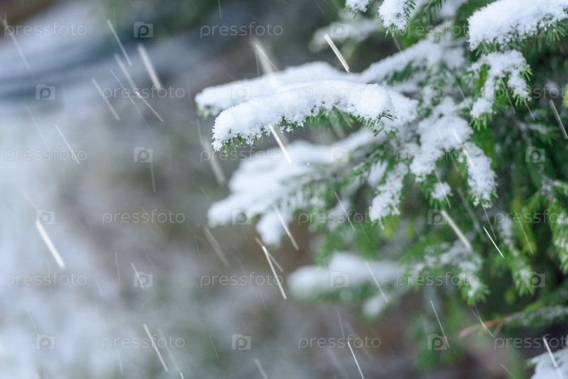 Снегопад на фоне деревьев-естественный зимний пейзаж