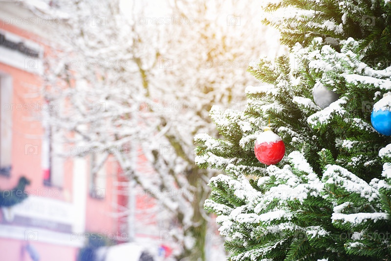 Рождественская елка в городе. Крупным планом