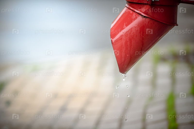 Дождевая вода вытекает из красной канализации. Защита от наводнений