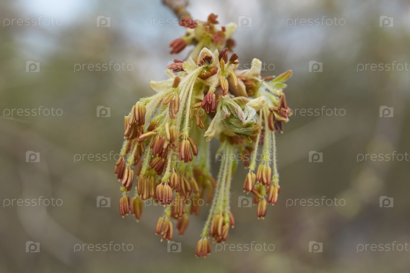 Цветение ясеньколистный кленовый, или американский клён (лат. Acer negundo), соцветия распускаются Весной