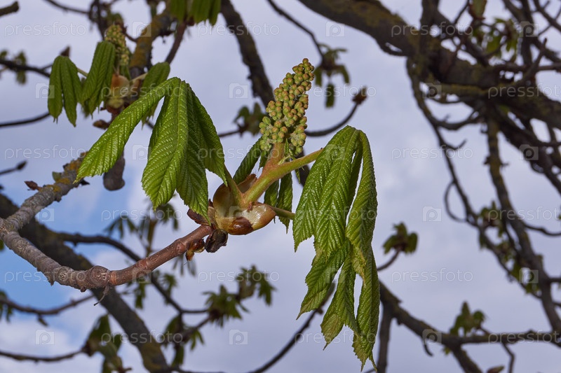 Весна. На городской площади цветут соцветия каштана