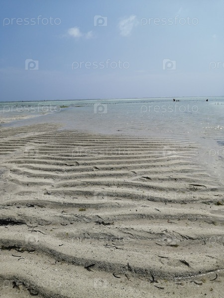 На Занзибаре во время отлива индийского океана оголяется ребристое дно и приходят жительницы на огороды