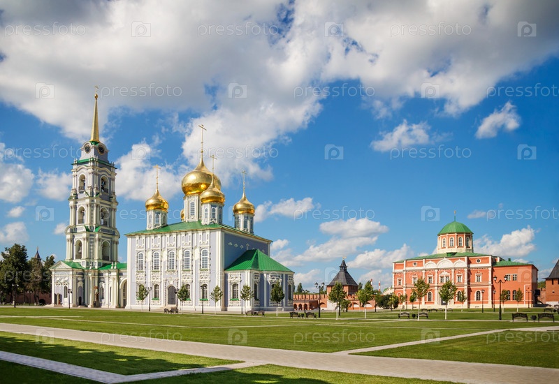 Россия, Тула, вид на Успенский и Богоявленский соборы Тульского кремля. 2017