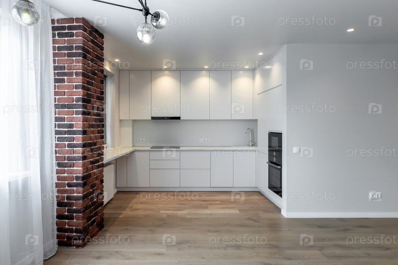 Современная светлая новая кухня в квартире с новым ремонтом