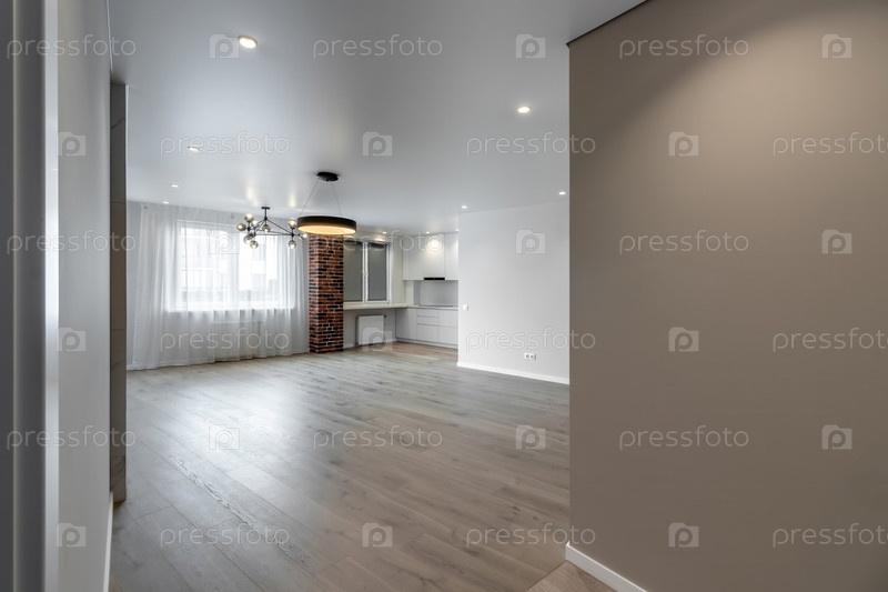 Интерьер пустой современной квартиры в светлых тонах сразу после ремонта