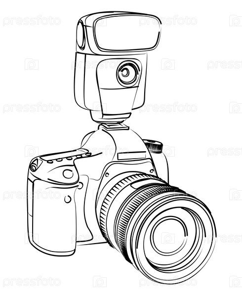 Набросок профессионального фотоаппарата со вспышкой