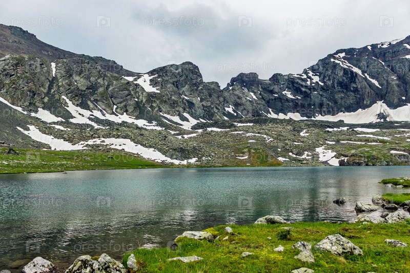 Большое холодное озеро высоко в горах Кавказа