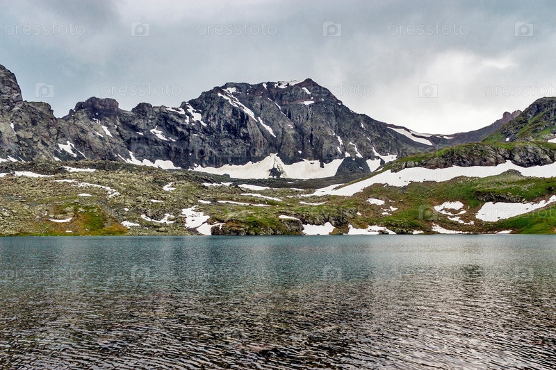 Большое холодное озеро высоко в горах Кавказа