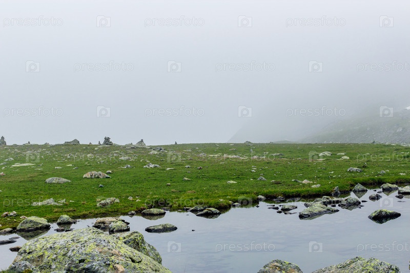 Большое холодное озеро высоко в горах Кавказа