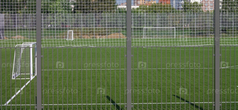Футбольное поле возле забора в солнечный день