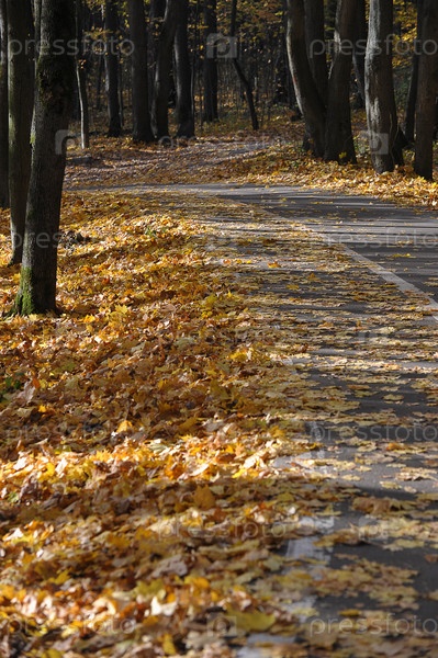 Осенний пейзаж - деревья в парке с желтыми листьями