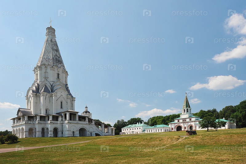 Вид на церковь Вознесения в Коломенском парке в Москве