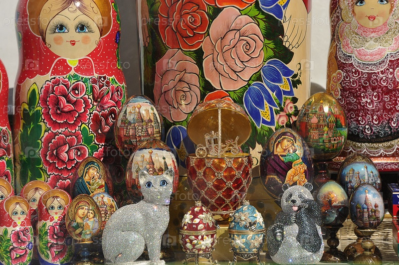 Витрина сувенирного магазина с матрешками на Старом Арбате в Москве