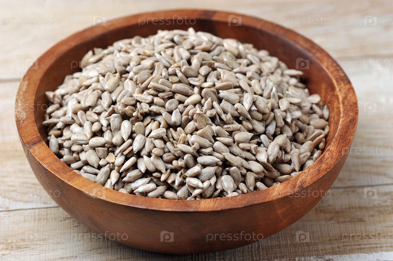 Очищенные семечки подсолнечника в деревянной миске