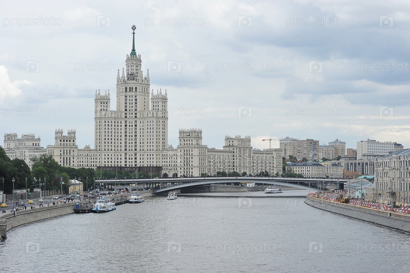 Вид на Москву-реку и высотку на Котельнической набережной в Москве