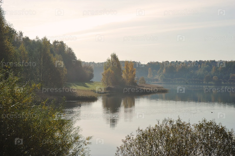 Вид на пруд в парке с осенними красками - осенний пейзаж