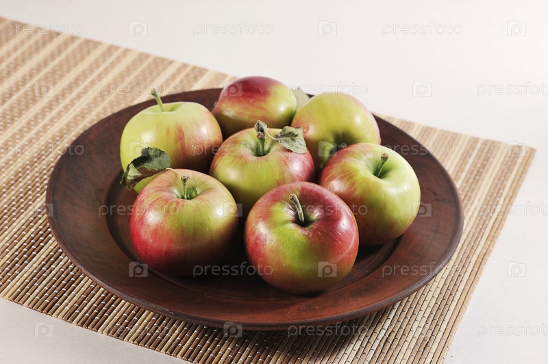 Красные спелые яблоки на тарелке - группа яблок