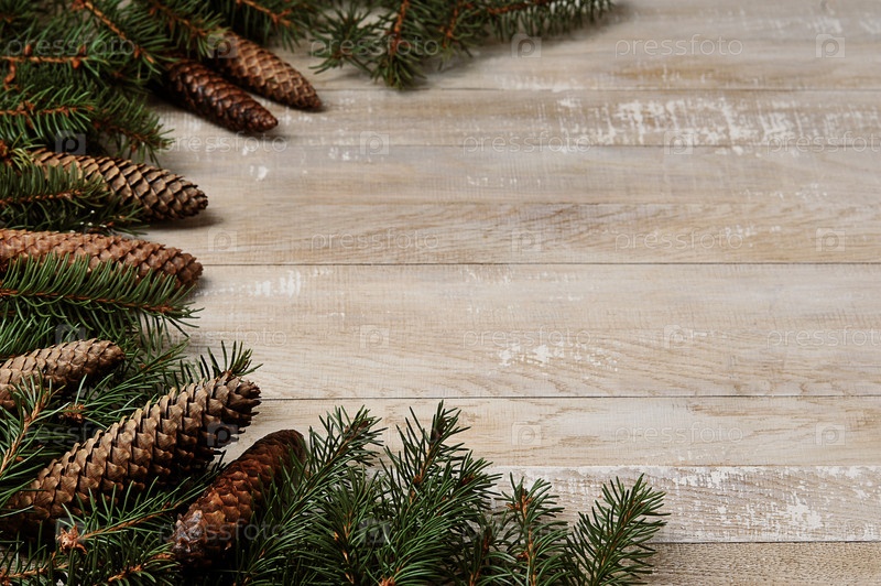 Рождественский фон с елками и шишками