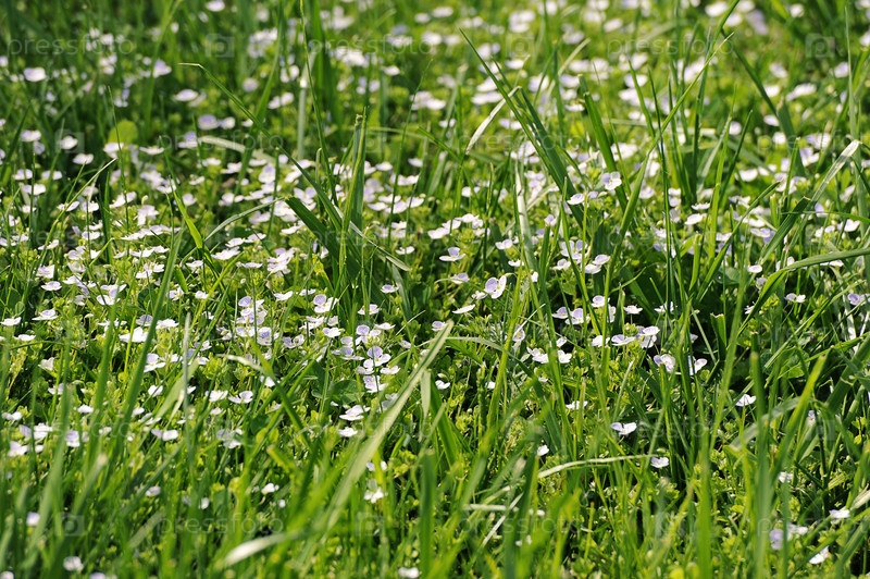 Абстрактный фон - зеленая трава и синие цветы